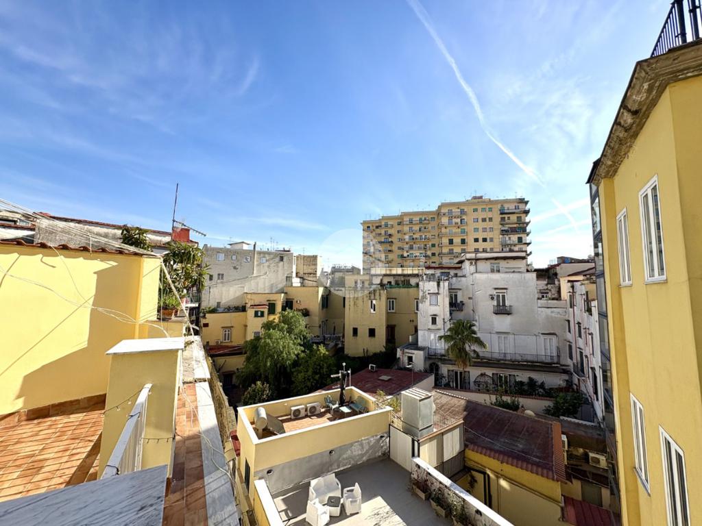 Uno dei punti di forza è il terrazzo a livello di 35 mq circa, che garantisce una luminosità straordinaria e rappresenta uno spazio ideale per momenti di relax all'aperto. La posizione al piano alto assicura un'esposizione soleggiata per gran parte della giornata, creando un'atmosfera calda e invitante. Questa soluzione è perfetta per chi cerca un'abitazione o un investimento che coniughino il fascino del passato con il comfort moderno, in una delle zone più autentiche e vivaci di Napoli.